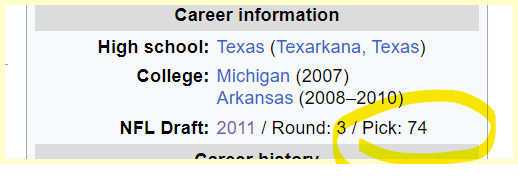 74th Pick of his Draft