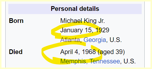 Her Brother was born on 1/15 and died on 4/4 by assassination