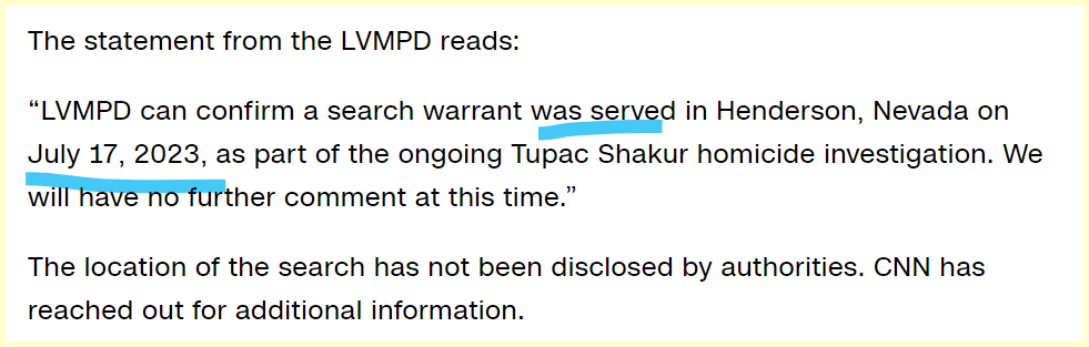 They Headline a search warrant has been issued on 18/7 for his homicide.