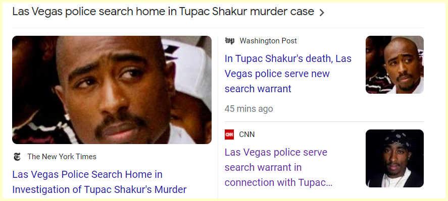 He was born Lesane Crooks They Headline a search warrant has been issued on 18/7 for his homicide. He was killed in a shooting on 13/9 This revelation comes 33 days from his birthday They actually served the warrant on 17/7 The warrant was served 59 days before his death anniversary 59 is a BIG … Continue reading Las Vegas police serve search warrant in connection with Tupac Shakur murder investigation