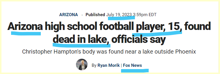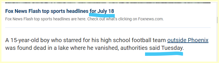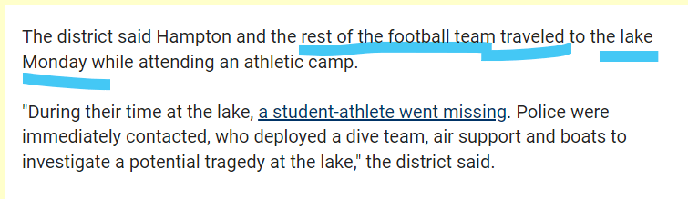 They went to the lake on Monday 17/7 and he is found dead on 18/7
