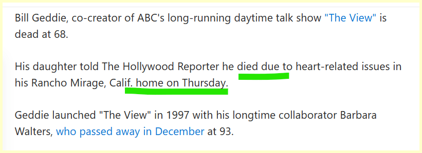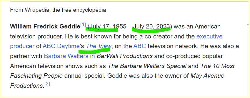 Bill Geddie, co-creator of ABC’s long-running daytime talk show “The View” is dead at 68.