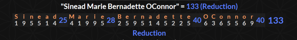Sinéad O’Connor [the accented “é” is omitted in the gematria calculator I use] = 33, 66.