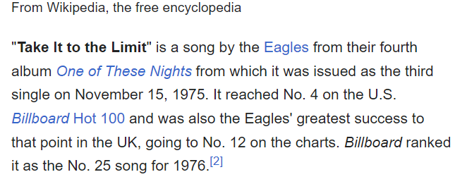TAKE IT TO THE LIMIT released on the 4th album. 4 is number of death.
