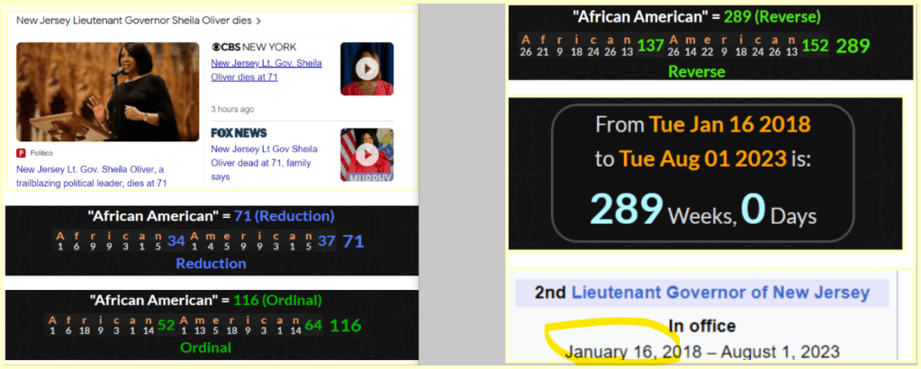 Her Birthday when she took her place was also on a Monthly kill date like Lt Gov Sheila Oliver’s….