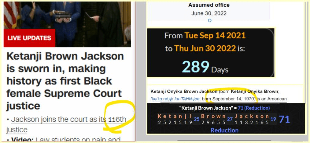 SHE WAS SELECTED 289 DAYS FROM HER BIRTHDAY AND BECAME THE 116th JUSTICE.