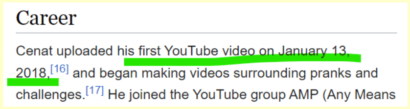 Cenat uploaded his first YouTube video on January 13, 2018… 1/13 and won ‘STREAMER OF THE YEAR on, 11/3.