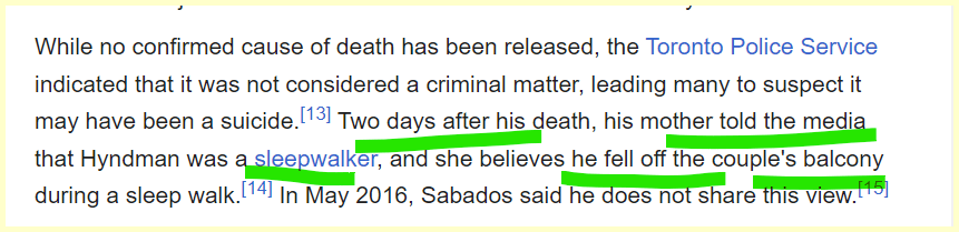 The story goes that he was a sleepwalker and somehow fell to his death while sleepwalking