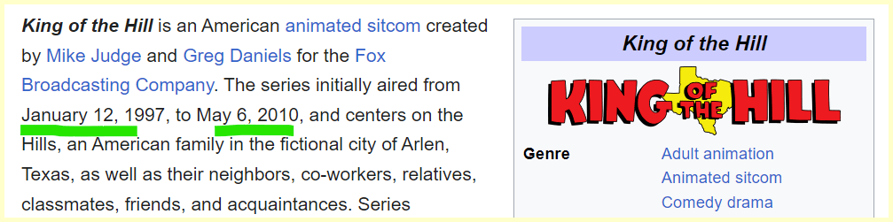 The release of King of HIll was Jan 12 (112) or (12/1)