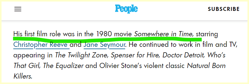 The first Film he was in, released on the day leaving 89 days left, and he died on 8/9