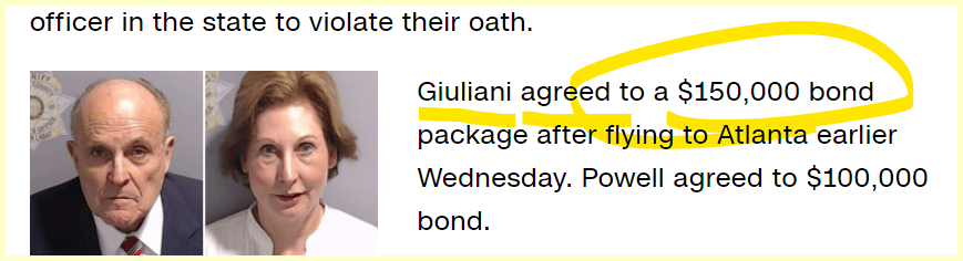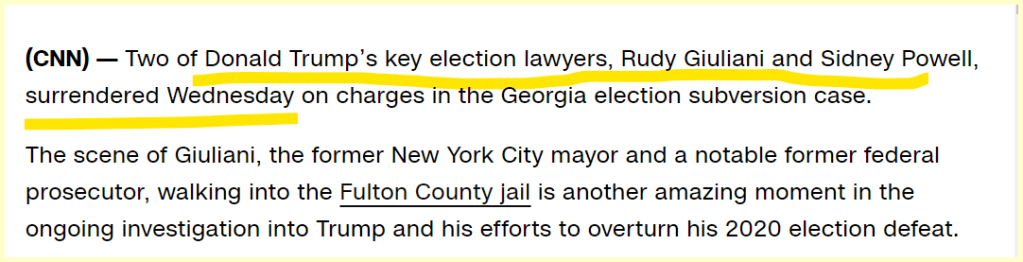 August 23, 2023August 23, 2023 Giuliani Surrenders at Jail in Georgia Election Case Fist off.. who gets to “negotiate a Bond?” This Headline comes 88 days after his birthday GIVE KNOWLEDGE AND SHARE THIS! Click to share on Facebook (Opens in new window) Facebook Click to share on Telegram (Opens in new window) Telegram Click to share on X (Opens in new window) X Like Loading... Related