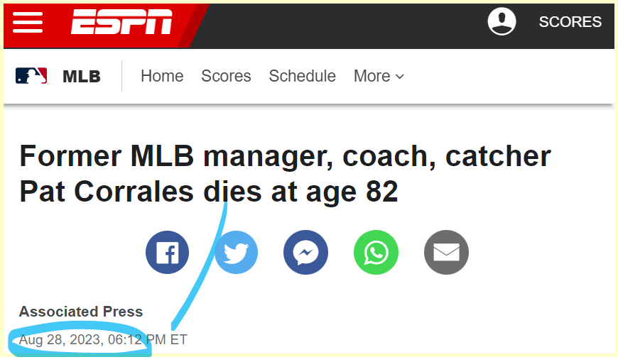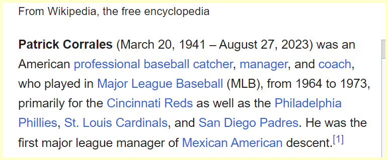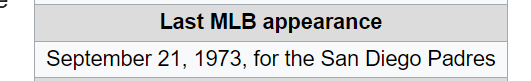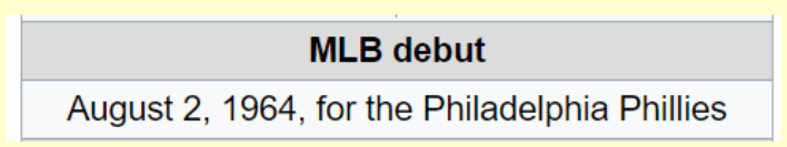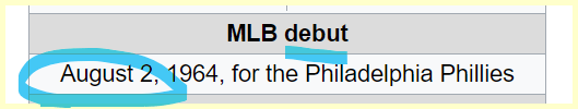 Dead at age 82 on the day leaving 126 dyas left. He made his Debut on 8/2 with the Phillies