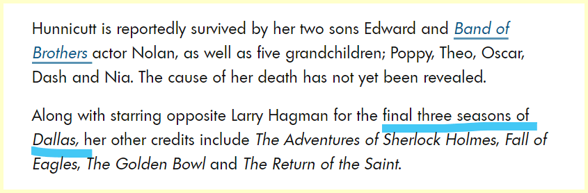 Her last episode on Dallas was Feb 1 in 1991 and she died 154 days from that anniversary on Aug 31