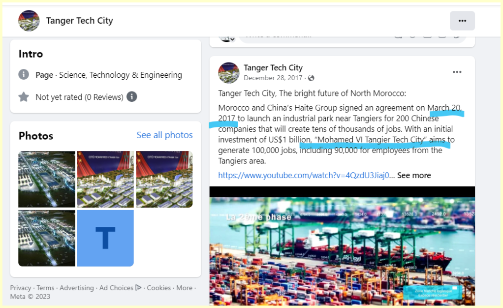 On March 20th in 2017 the King launched the “Mohamed VI Tangier Tech City” agreement