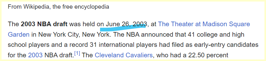 56th overall Pick in the 2003 NBA Draft