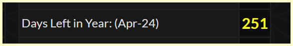 April 24th was the 114th day & also the day leaving 251 days left in the year.