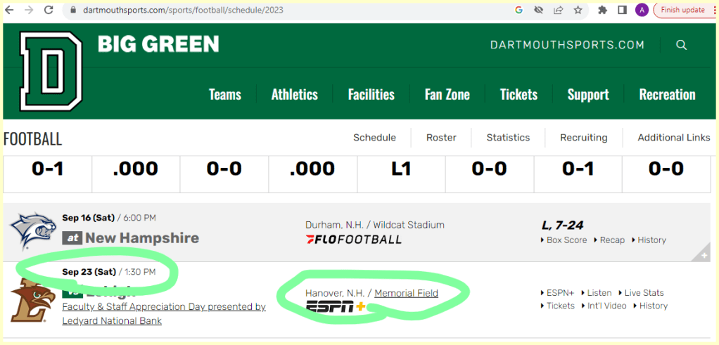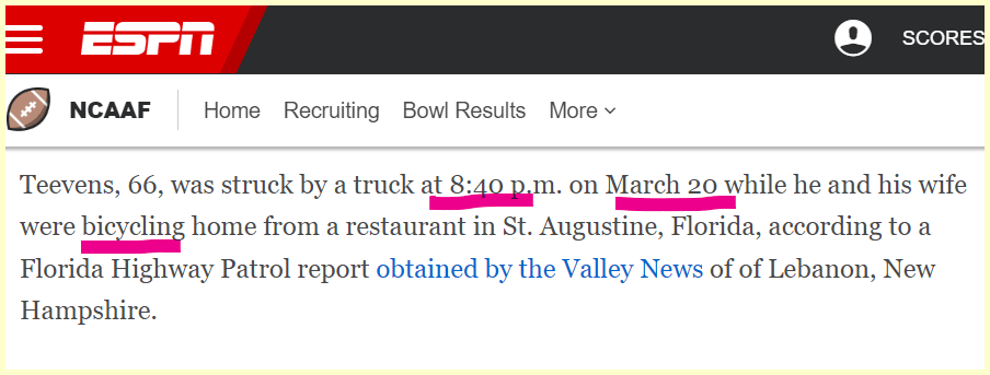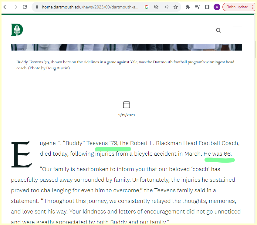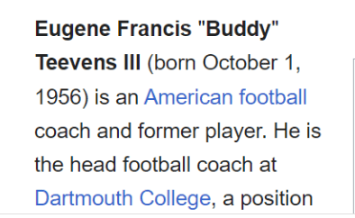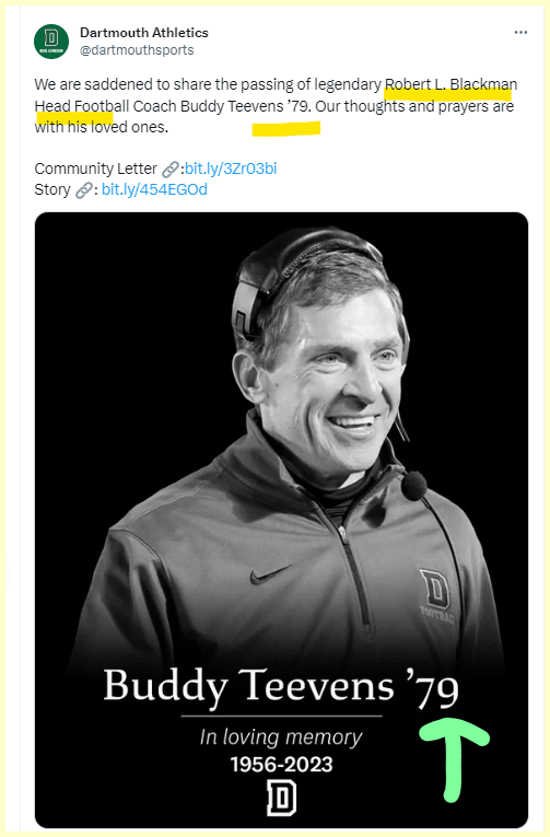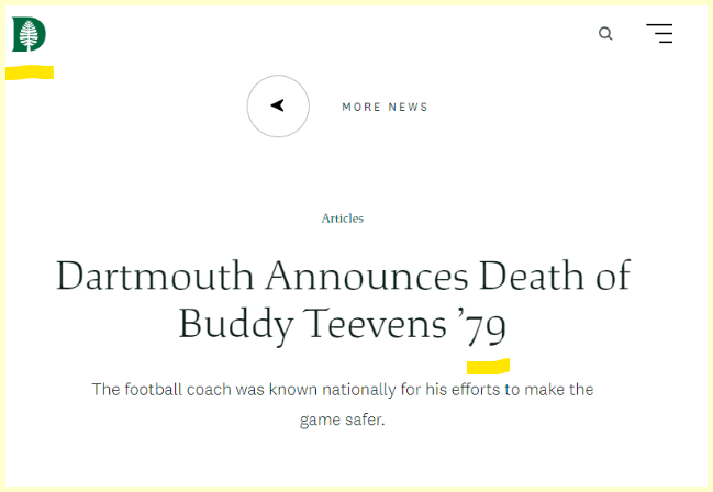 He most prominently played for & coached the Dartmouth Big Green (= 187), and was hit by a car 187 days before that team’s first game of this season.