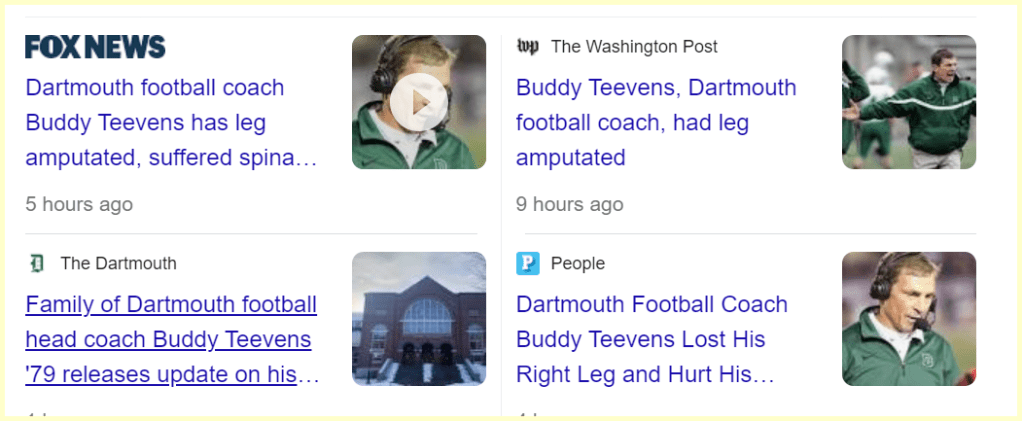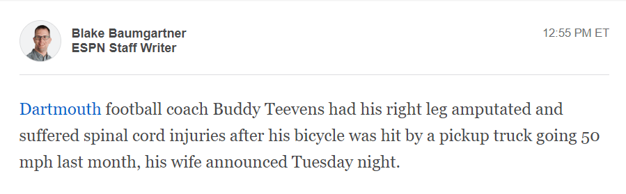 Did Dartmouth College coach, Buddy Teevens survive a sacrifice attempt?