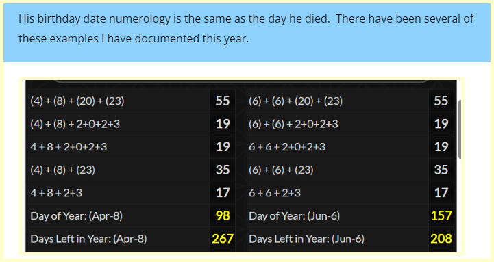 William Spriggs died on 6/6 the same date numerology as his upcoming birthday