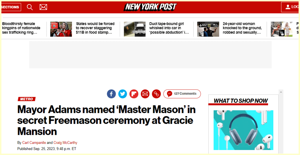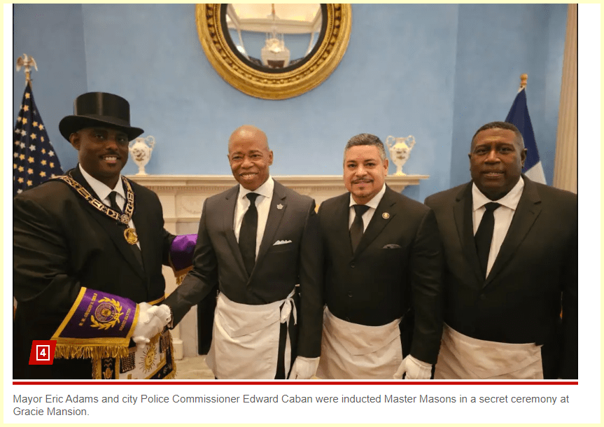 September 26, 2023 Mayor Adams named ‘Master Mason’ in secret Freemason ceremony at Gracie Mansion GIVE KNOWLEDGE AND SHARE THIS! Click to share on Facebook (Opens in new window) Facebook Click to share on Telegram (Opens in new window) Telegram Click to share on X (Opens in new window) X Like Loading... Related