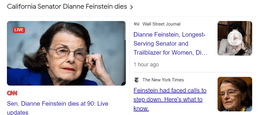 Her Death Headline comes 30 years and 330 days after she became Senator