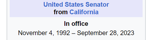 She was the Senator of California and Her Headlines came on the day leaving 93 days left in the year