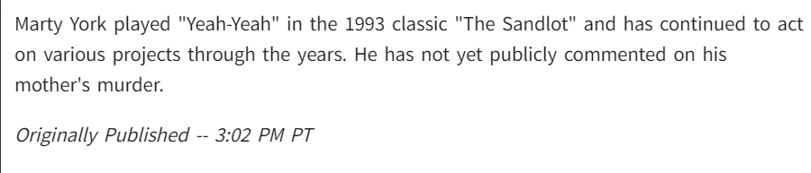 Marty speaks out on Friday the 13th also about the death of his mother. 177 days from Sandlot release date.
