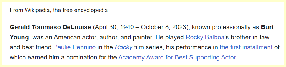 He was famous for being Rocky’s best friend and brother in law *Sylvester Stallone*