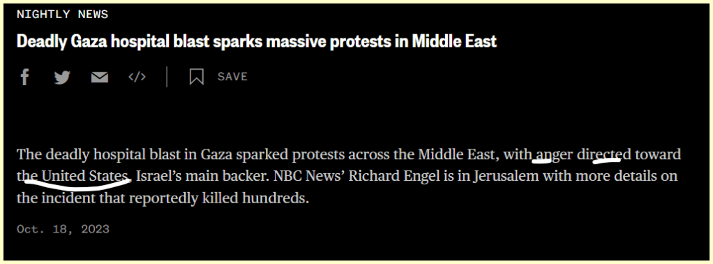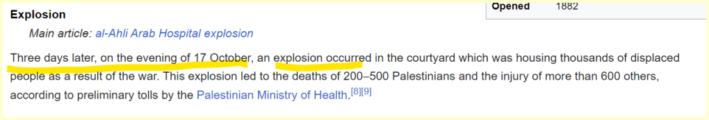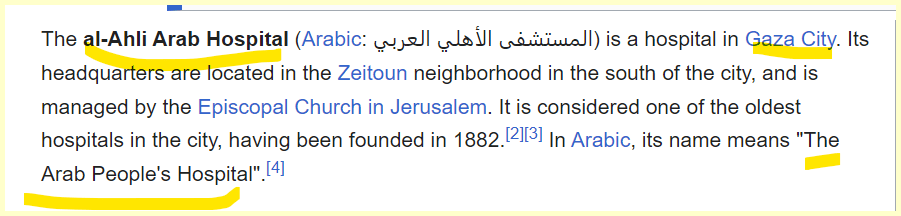 Hospital fits into the War pattern we are documenting with Israel.