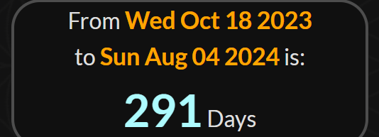 Oct 18th is also 291 days from Hakeem’s next Birthday