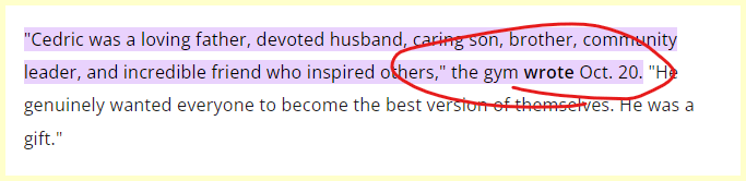 Cedric is found dead “Suddenly” in his home.