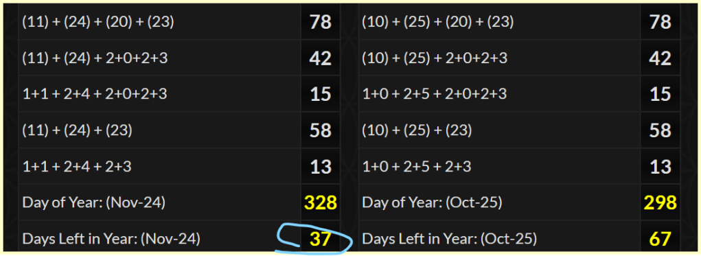 The Next date for a possible shooting could be Nov 24th. The day leaving 37 days left and has matching date numerology with Oct 25th Shooting.