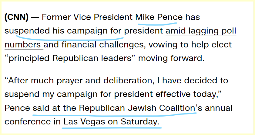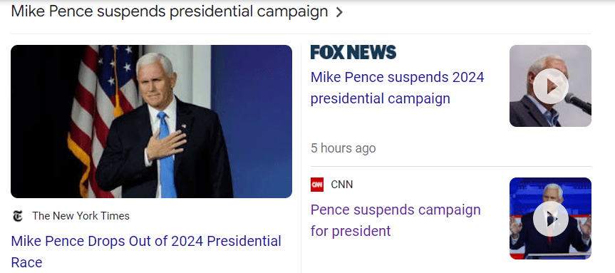 October 28, 2023October 29, 2023 Pence suspends campaign for president This news comes 144 days after his birthday GIVE KNOWLEDGE AND SHARE THIS! Click to share on Facebook (Opens in new window) Facebook Click to share on Telegram (Opens in new window) Telegram Click to share on X (Opens in new window) X Like Loading... Related
