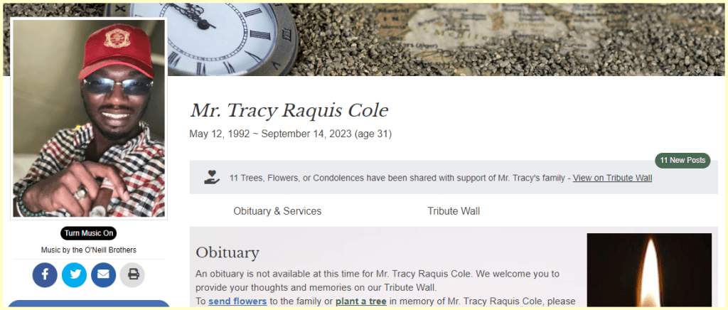 His Grandson’s (Tracy Cole) killer is arrested 141 days before Nat’s Birthday.