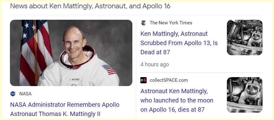 His Headline death comes 201 days from the anniversary of Apollo 16 flight