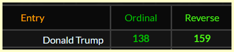 It will be 159 days from Trumps Birthday and 138 from the Judge’s, who issued the Gag Order