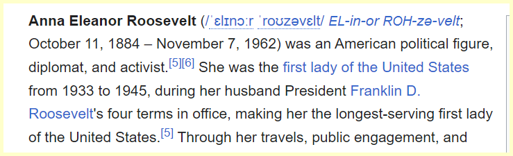 The longest serving FIRST LADY died on Nov 7th in 1962