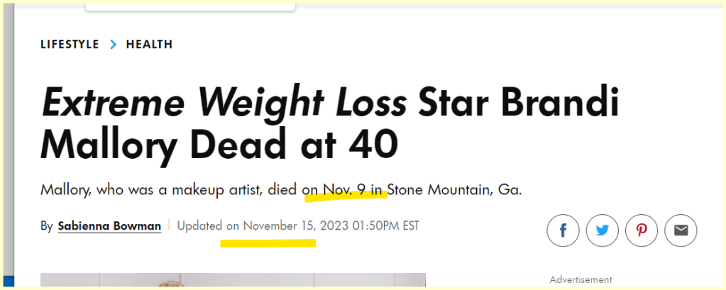 She died on the 9th, and headline Death News on 11/15, 170 days from the release anniversary. This is why and how they decide when you get your news. Its scripted Numeric Patterns.