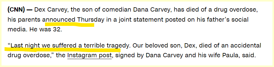 Dad announced the death on Thursday Nov 16th. .