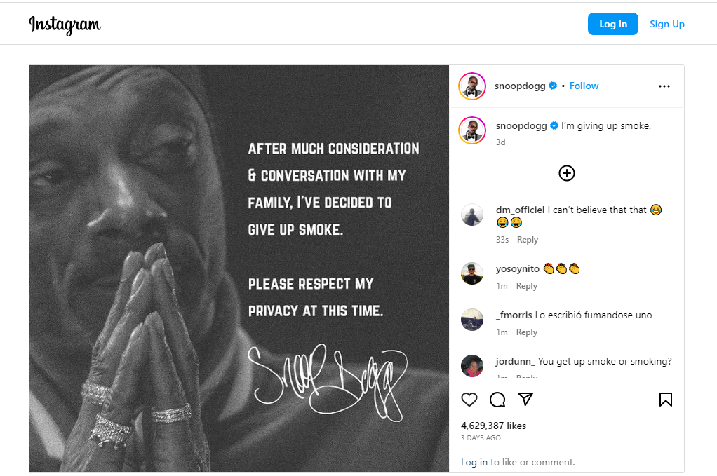 Snoop Dogg says he’s giving up smoking weed.