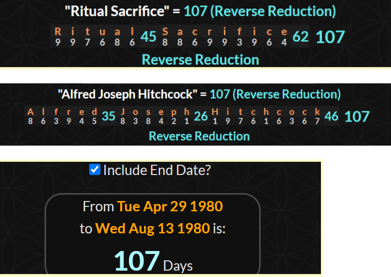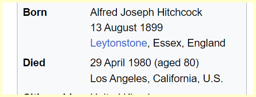 She also died 43 days after Hitchcock’s Birthday