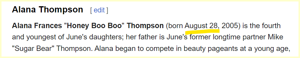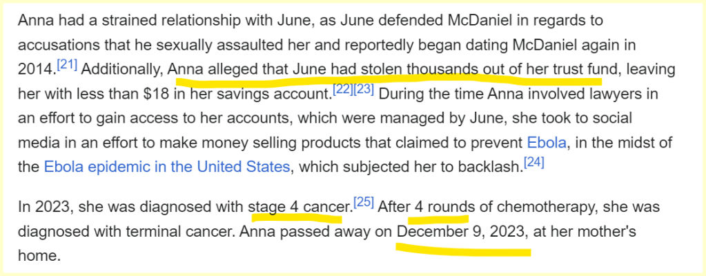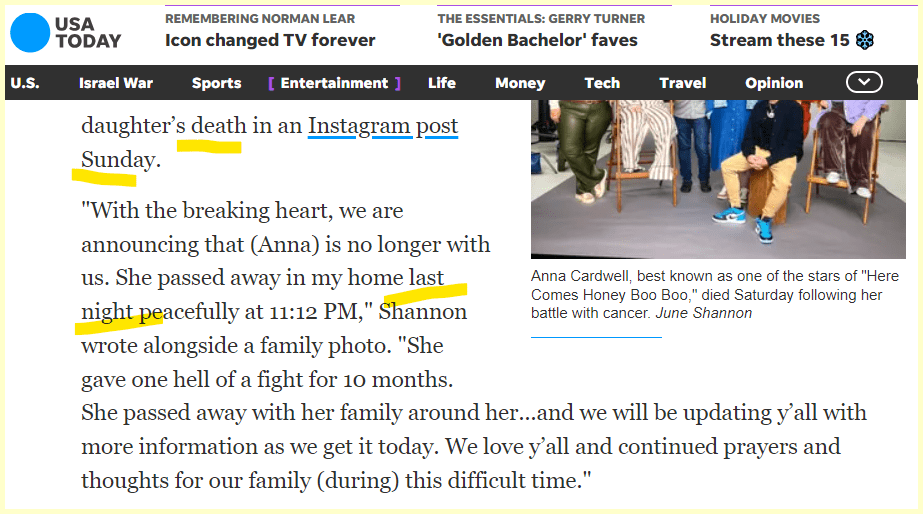 They announce her death on Sunday the 10th. 105 days from her birthday and her sister Honey BooBoo’s birthdays