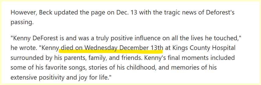 They Headline his death on Dec 15th, 130 days from his birthday.