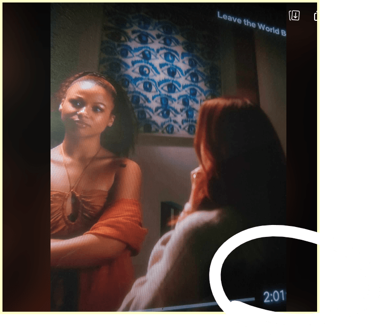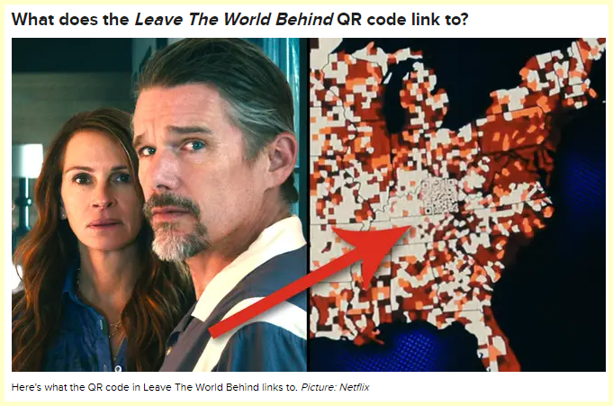 Around 34 minutes into the film, the camera pans to one of the TVs in the house which has been left on the ‘Emergency Broadcast’ screen. The screen briefly gains signal and a map of the U.S. is shown alongside a headline that reads: “Cyberattack across the country”.