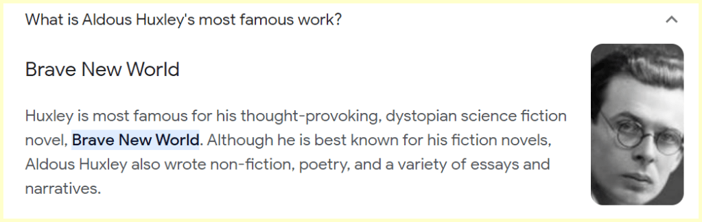 The Huxleys had the Bomb Shelter and he wrote BRAVE NEW WORLD. (Think about it)