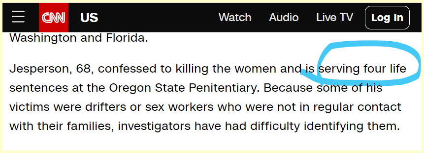 Serving 4 life sentences. We know 4 is the number associated with death rituals.