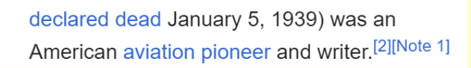 The presumed her dead 2 years after her disappearance on Jan 5th 1939