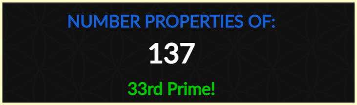 137 is the 33rd Prime. (We know about the 33)