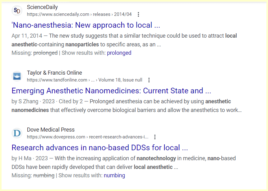 February 14, 2024 Nano Technology in Dental Anesthetics. Be Careful. https://pubmed.ncbi.nlm.nih.gov/28395522 GIVE KNOWLEDGE AND SHARE THIS! Click to share on Facebook (Opens in new window) Facebook Click to share on Telegram (Opens in new window) Telegram Click to share on X (Opens in new window) X Like Loading... Related