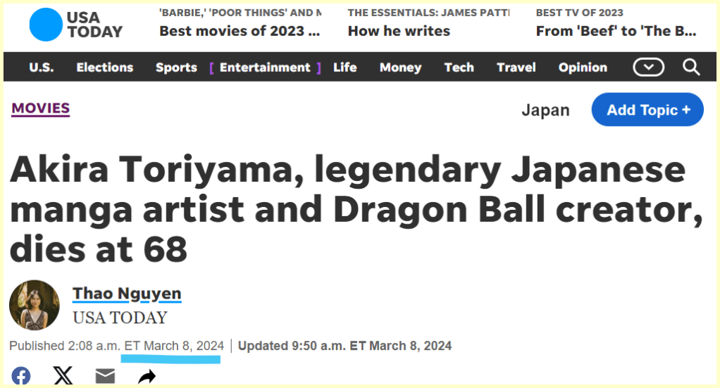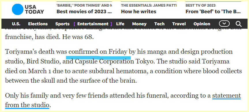 Headlines hit on the 68th day of the year. He is dead at age 68